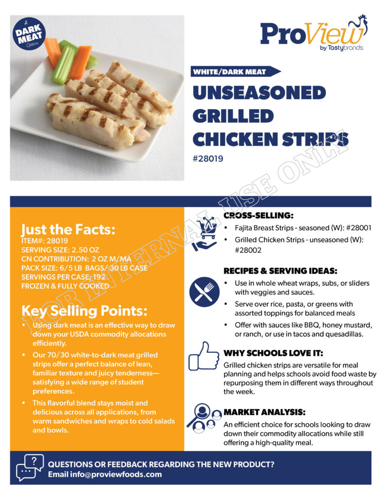 UNSEASONED GRILLED CHICKEN STRIPS FACT SHEET
