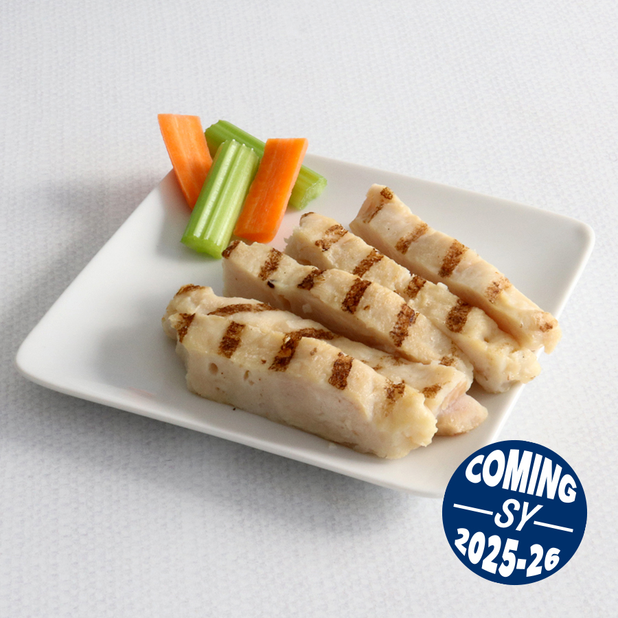 Fully cooked chicken breast strips with rib meat